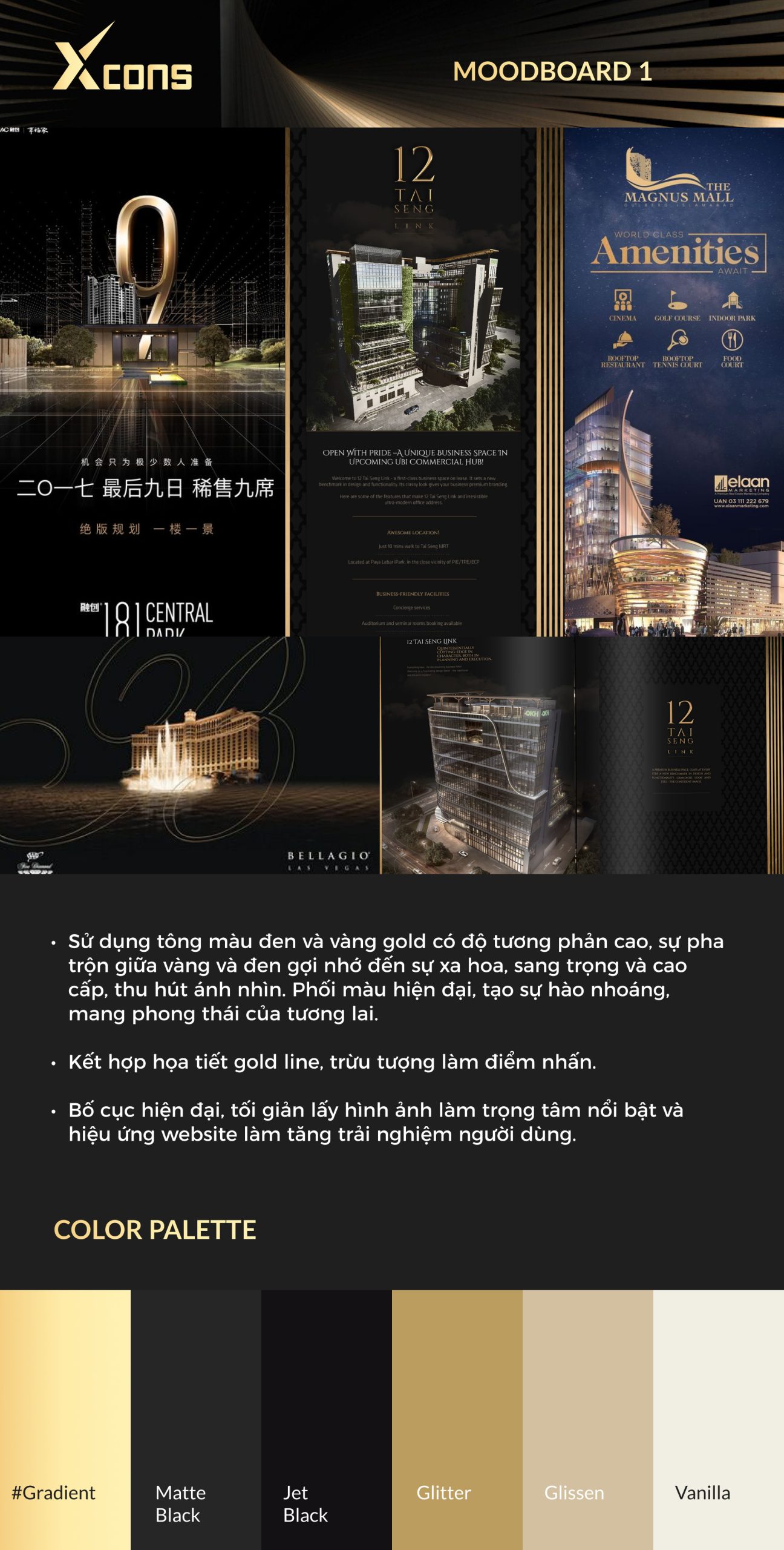 Giao diện website sử dụng phong cách hiện đại, tối giản, tông màu trầm sang trọng, làm nổi bật hình ảnh công trình và đội ngũ nhân sự. Hệ thống typography, khoảng trắng và bố cục được tính toán để đảm bảo tính thẩm mỹ, dễ đọc và nhất quán với định vị thương hiệu kiến trúc – nội thất cao cấp của XCONS.